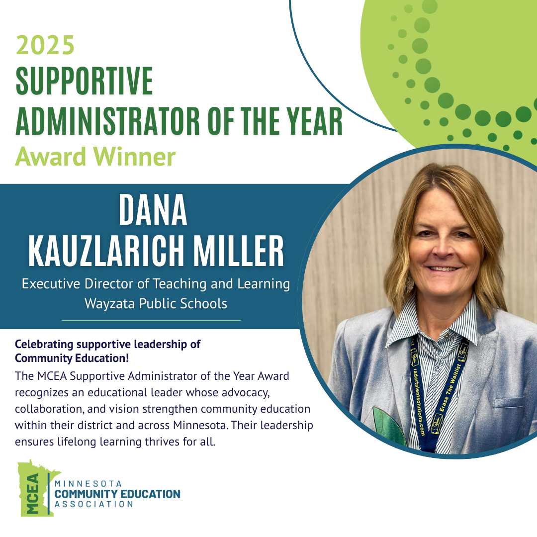 The honorees featured represent the best of what Community Education stands for: inclusion, collaboration, and a shared belief in lifelong learning. Their work strengthens communities across Minnesota and inspires others to continue making a difference.